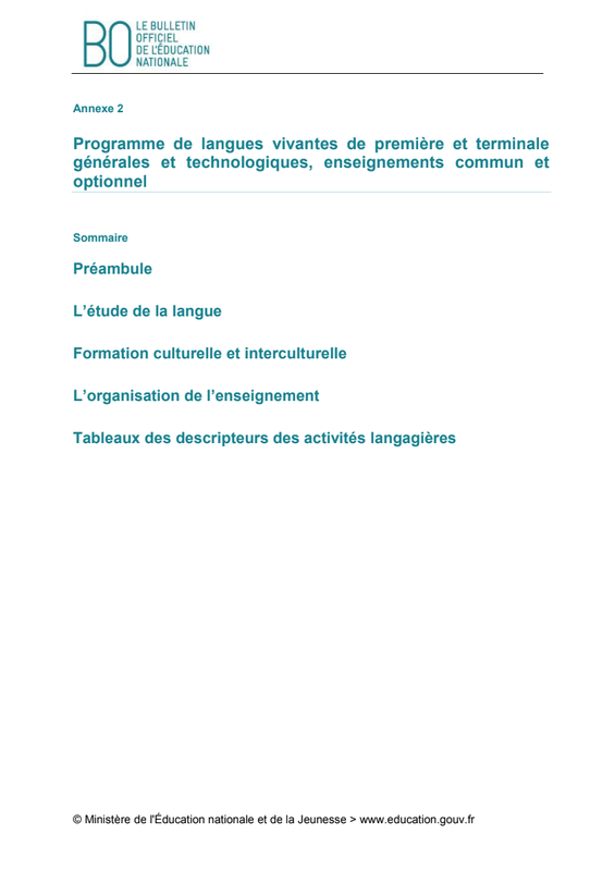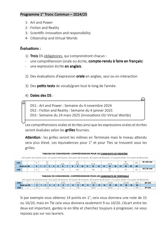 Programme 1ere Tronc Commun
