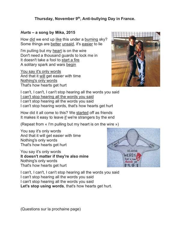 Anti Bullying Mika - exploitation grammaire et message - Nov 2023
