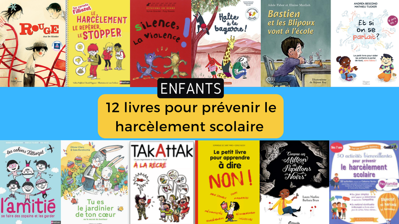 Je vous propose une sélection de 12 livres pour aborder la notion de harcèlement scolaire avec les enfants dans l'optique de briser le cercle de la violence à l'école, prévenir le harcèlement et trouver des solutions non violentes aux désaccords.
