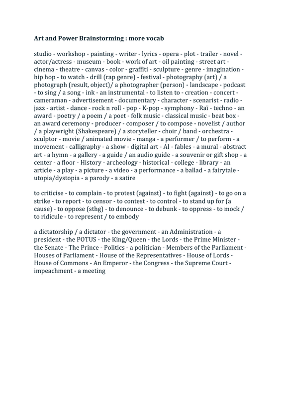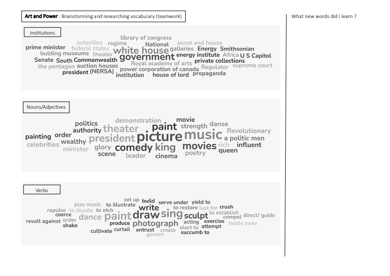 Comment le rapport entre art et pouvoir définit-il les caractéristiques de chaque aire géographique étudiée à différentes époques ? Le pouvoir s’est toujours appuyé sur l’art et les artistes pour être célébré, légitimé ou renforcé. Lorsque l’artiste dépend du pouvoir politique ou économique, son oeuvre peut-elle prendre la forme d’une contestation de celui-ci ? Le rapport entre art et pouvoir donne lieu à diverses interrogations : l’art est-il au service du pouvoir ? Le pouvoir sert-il l’art ? L’art peut-il être un contre-pouvoir ? L’art est-il une forme d’expression politique ? Peut-on concilier liberté de création et contraintes diverses ? Il conviendra d’étudier comment ce rapport à l’art a évolué dans l’histoire pour chaque culture étudiée.