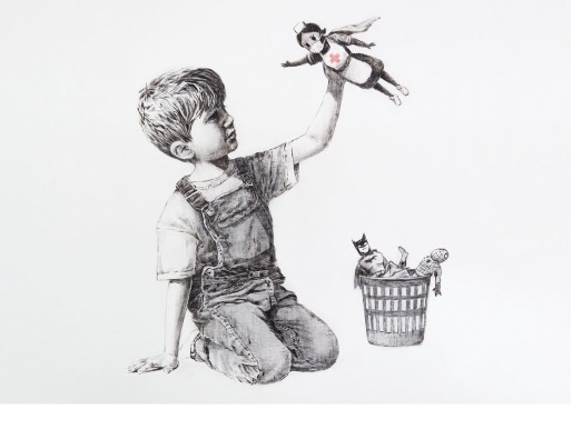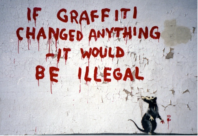 Graffiti, Consumerism, and Capitalism "We can't do anything to change the world until capitalism crumbles. In the meantime, we should all go shopping to console ourselves." Banksy’s critique of capitalism and consumerism is a key theme he explores and revisits throughout his career. Many of his editioned prints, in fact, relate to
